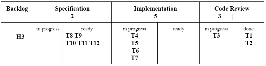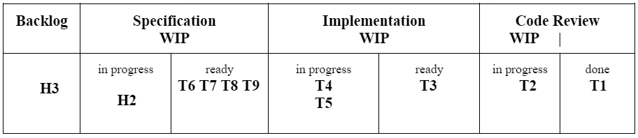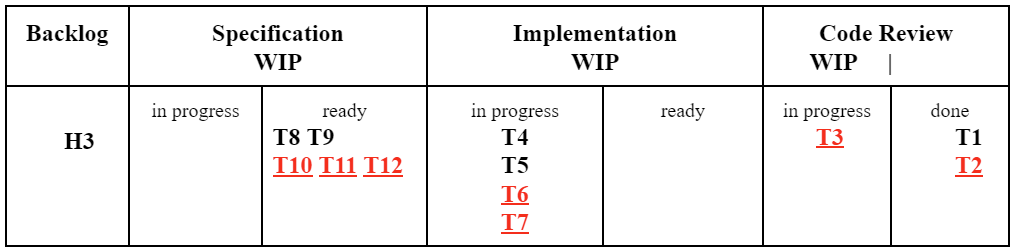 Days later, the Kanban Board was updated to the following state (tasks that moved forward are distinguished by being underlined and in red).